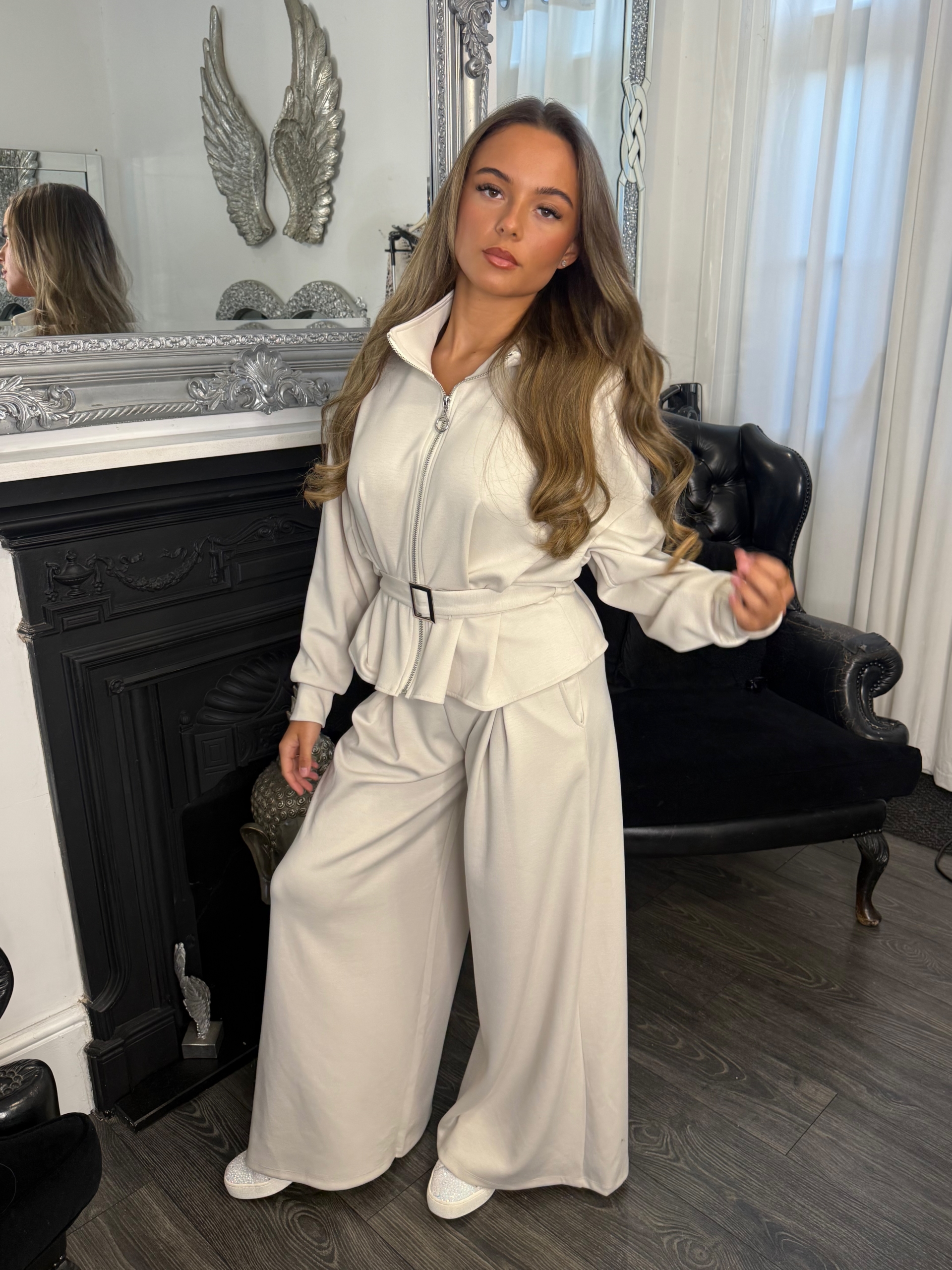 - Cream Front Pocket Jacket & Wide Leg Trouser Co-ord