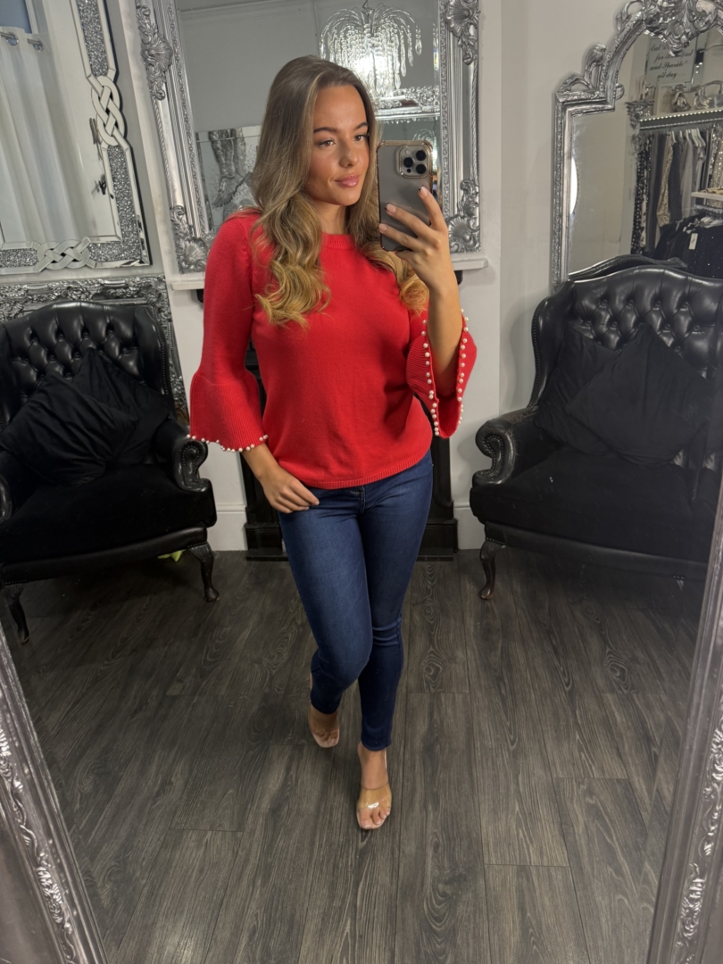- Cute Super Soft Jumper With Flared Cuff With Beaded Detail