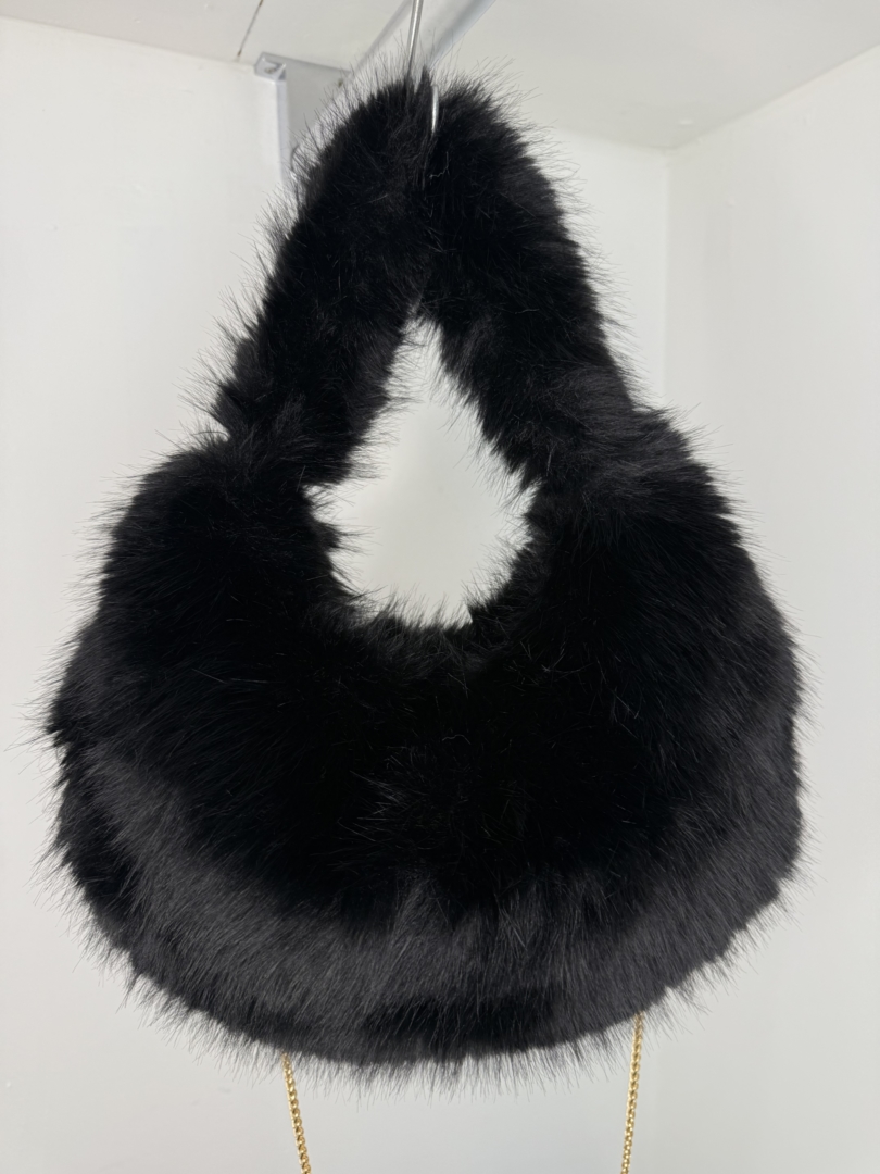 - Ribbed Bardot Style Midi Dress With Fluffy Faux Fur Detail