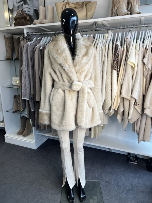 - Faux Fur Military Button Overcoat With Tie Up Detail