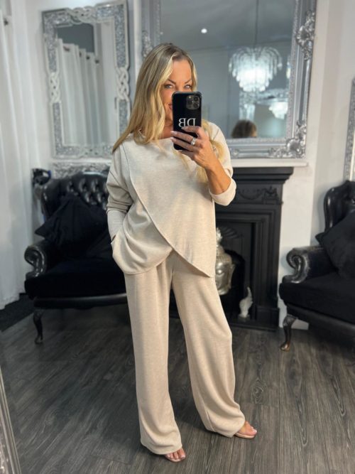 - Knitted Gold Button Cardigan With Contrast Cuff’s And Wide Leg Trouser Co-ord