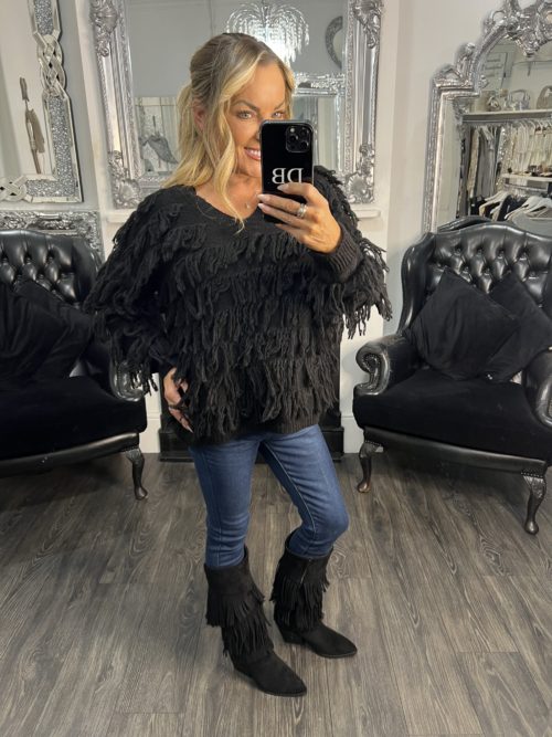 - Suedette Ankle Boots With Fringe And Buckle Detail