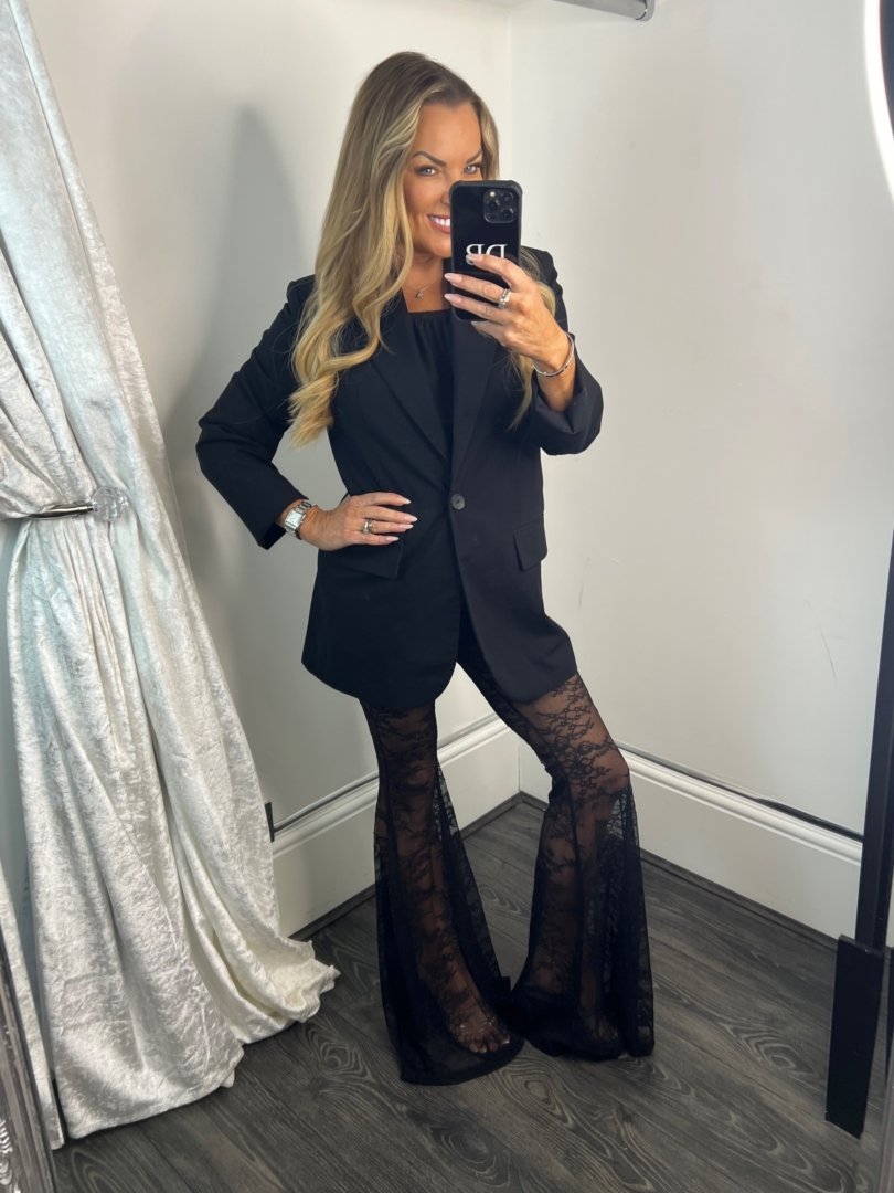 - Knitted Gold Button Cardigan With Contrast Cuff’s And Wide Leg Trouser Co-ord
