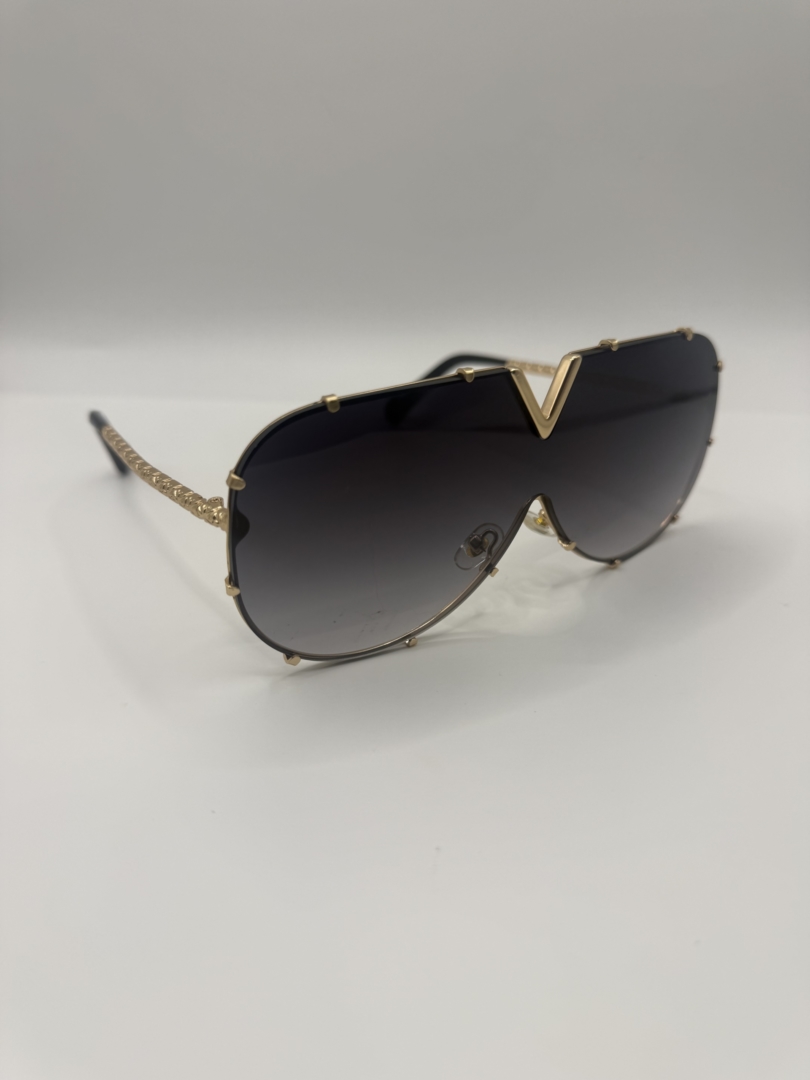 - Deep V Neck Jumpsuit With Gold Broach And Tie Neck Detail