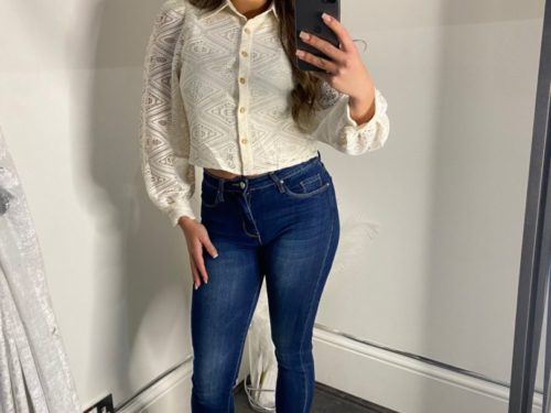 - Cream Lace Shirt With Frill Cuff & Hem Detail