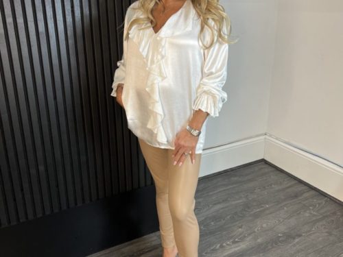 - Satin Feel Ruffle Front Blouse