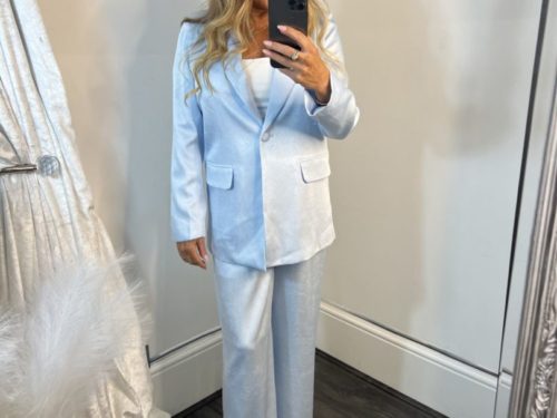 - Wide Leg Suit Trousers With Silver Button Detail
