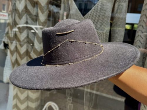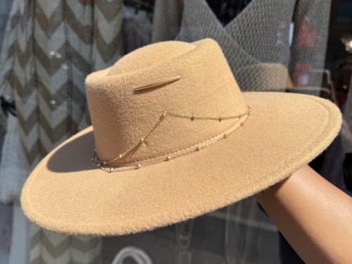 - Round Top Hat With Gold Chain Detail