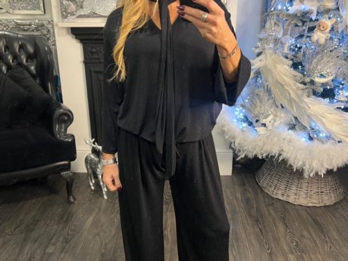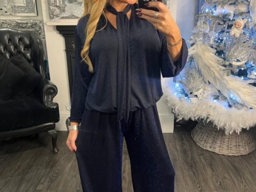- Shimmer Tie Neck Detail Lounge Set