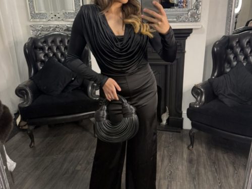 - Satin Feel Cowl Long Sleeve Bodysuit
