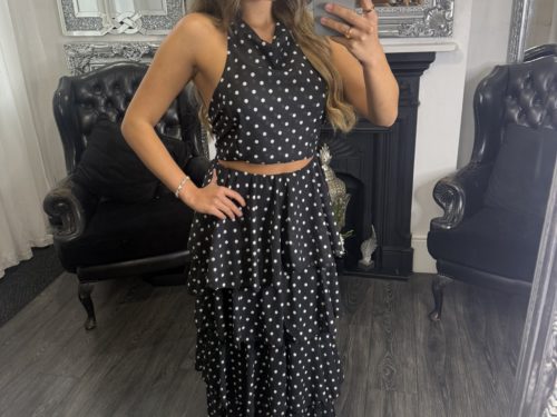 - Polka Dot Two Piece Tie Top & Layered Long Skirt