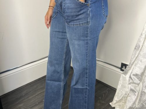 - Wide Leg Front Pocket Jeans With Gold Button Detail