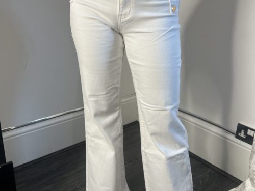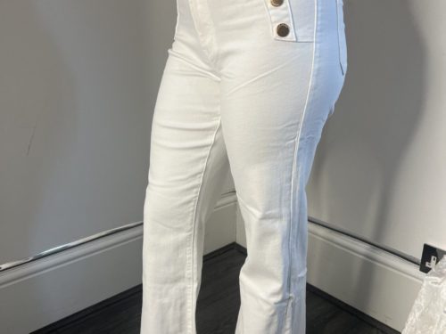 - White Flared Jeans With Gold Button Detail