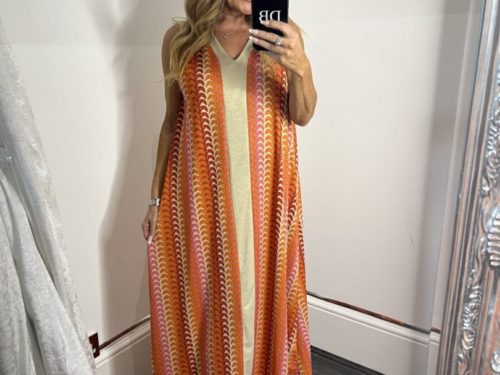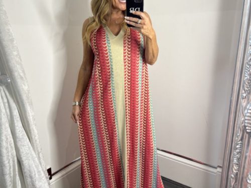 - Zig Zag Maxi Dress With Gold Stitch Detail