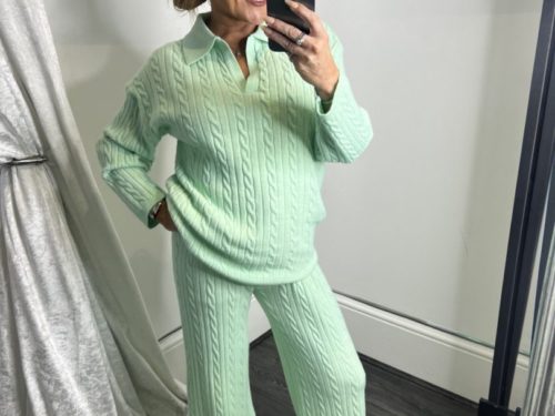 - Supersoft Cable Knit Lounge Set With Collar Detail