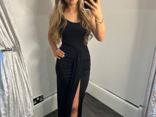 - Black Bandeau Style Top And Longline Maxi Skirt With Side Split Detail