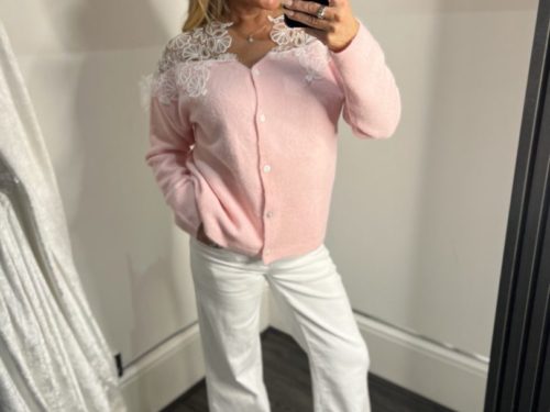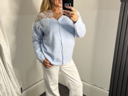 - Soft Knit Cardigan With Shoulder White Lace Detail