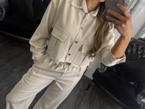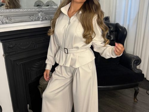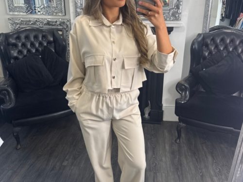 - Cream Front Pocket Jacket & Wide Leg Trouser Co-ord