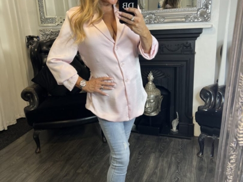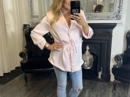 - Baby Pink Satin Feel Shirt With Tie Detail