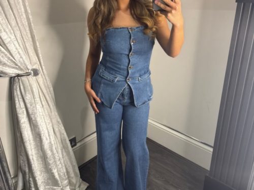 - Double Denim Bardot Top & Wide Leg Jeans Co-ord