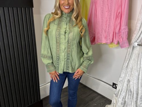 - Baby Blue Pearl Shirt With Collar Detail