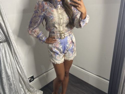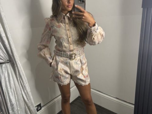 - Floral Print Shirt & Short Set With Gold Buckle Belt