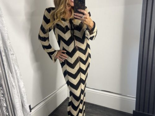- Zig Zag Maxi Dress With Gold Stitch Detail