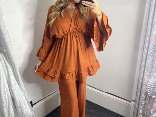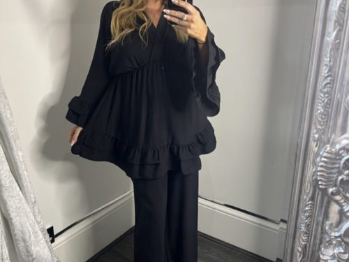 - Linen 2 Piece Frilled Top & Barrel Trouser Co-ord