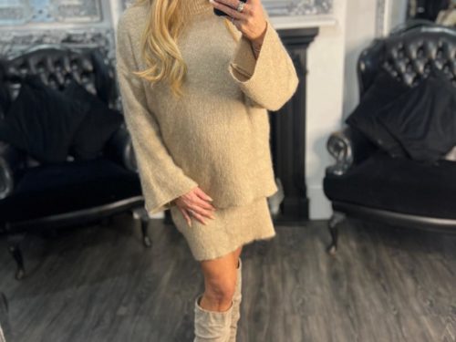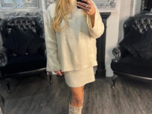 - Cream Shimmer Knit Oversized V Neck Jumper