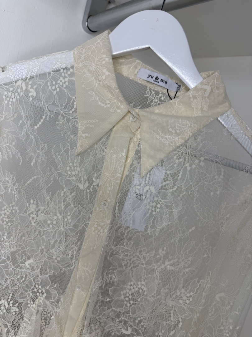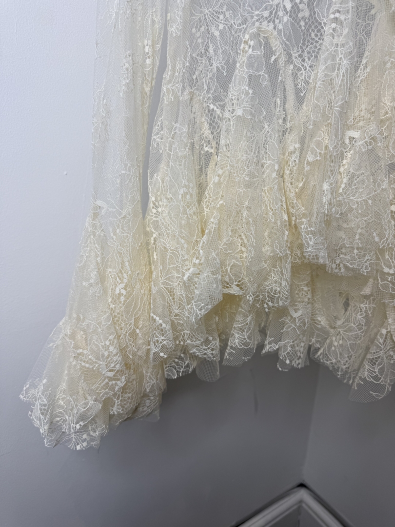 Cream Lace Shirt With Frill Cuff & Hem Detail