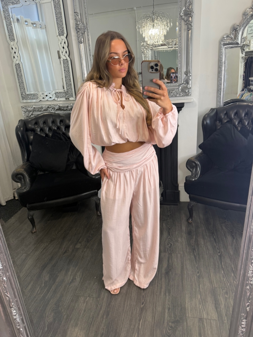 - Pink Zig Zag Design Chiffon Top And Wide Leg Trouser Co-ord