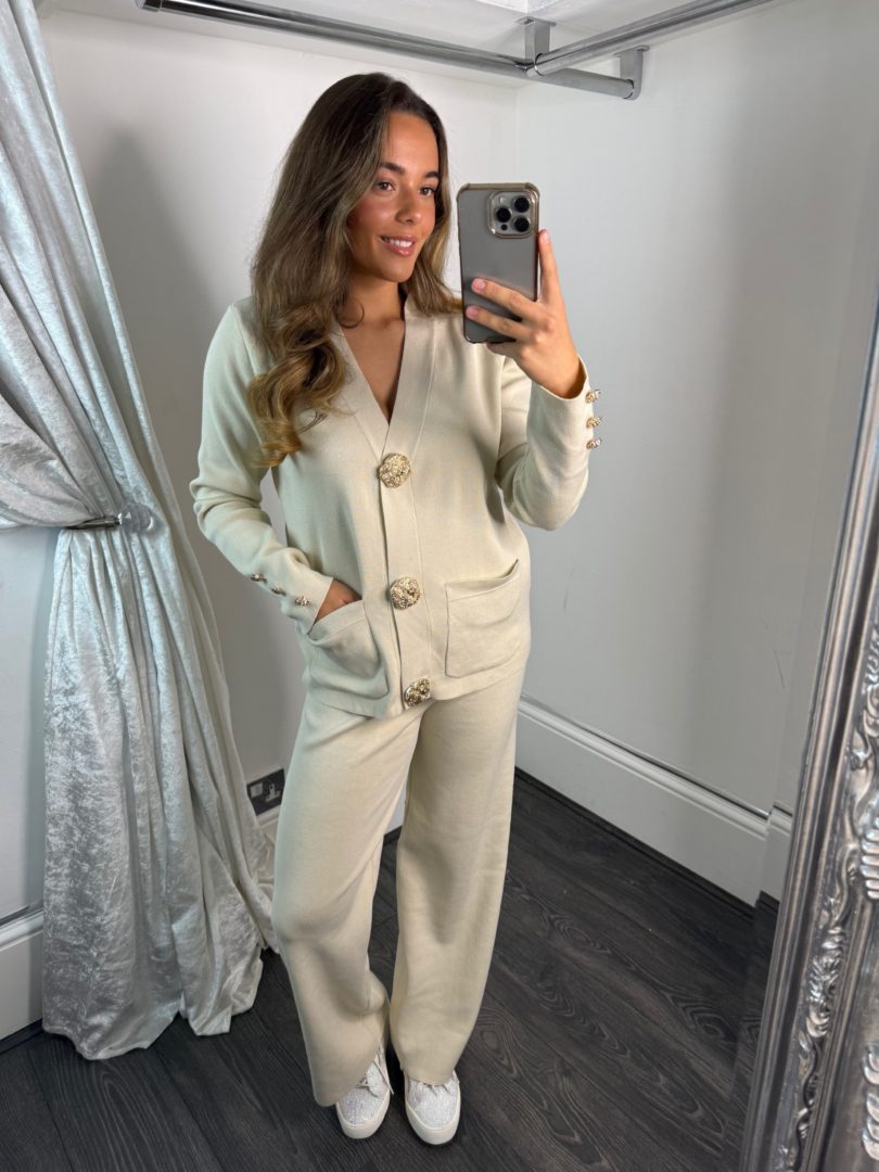 Gold Nugget Button Detail Lounge Set With Pocket Detail